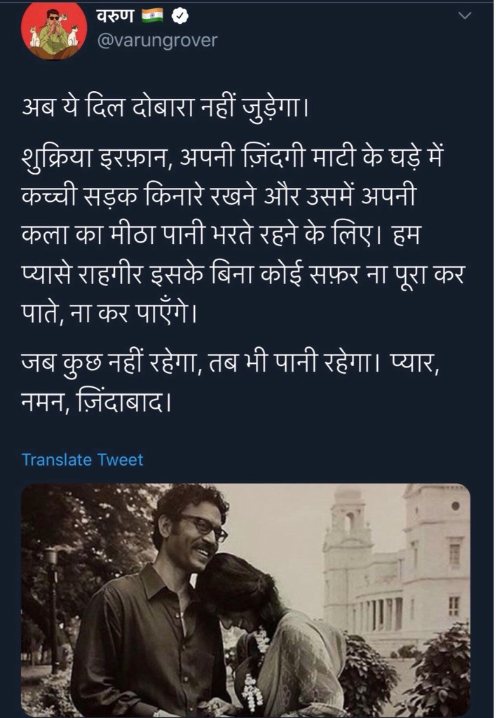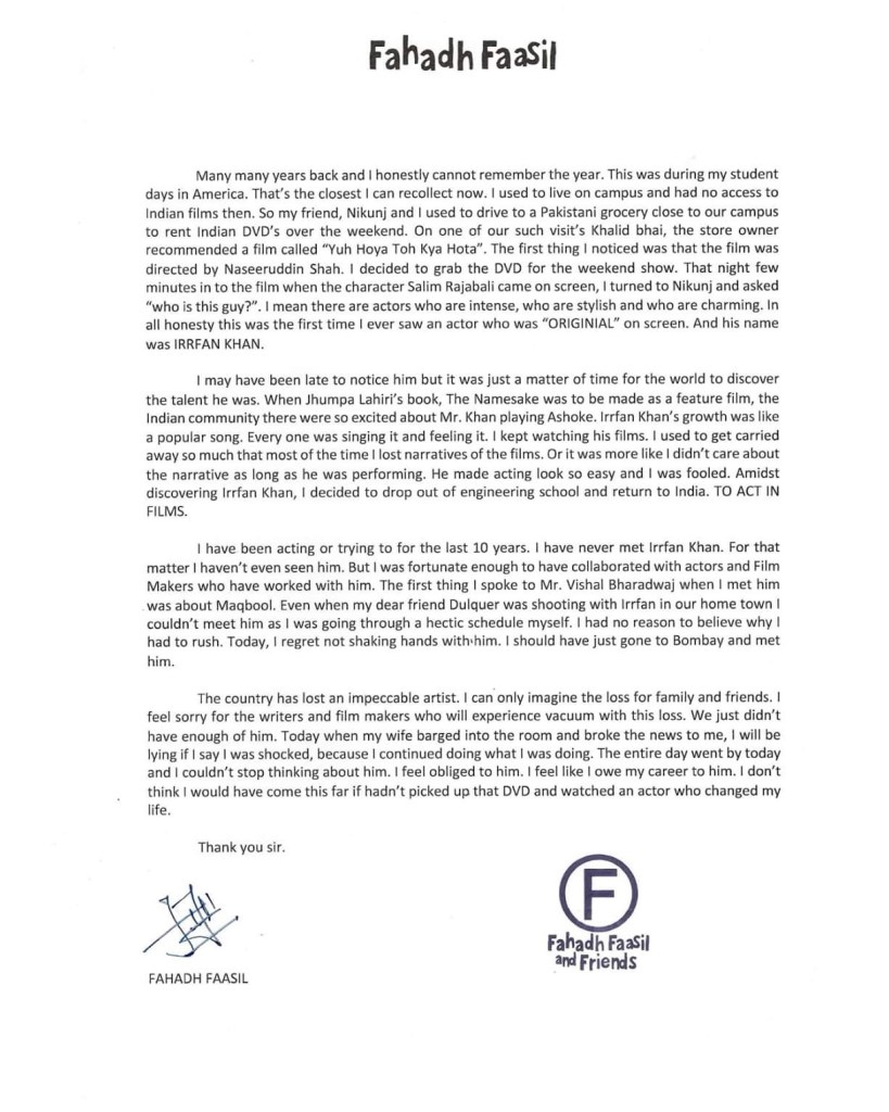 इरफान के नाम ये आखरी प्रेम पत्र हीं उसकी विरासत है